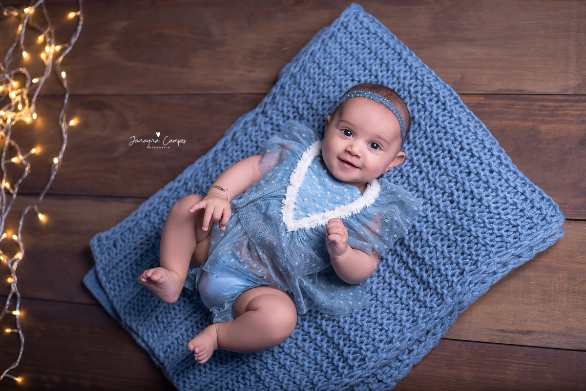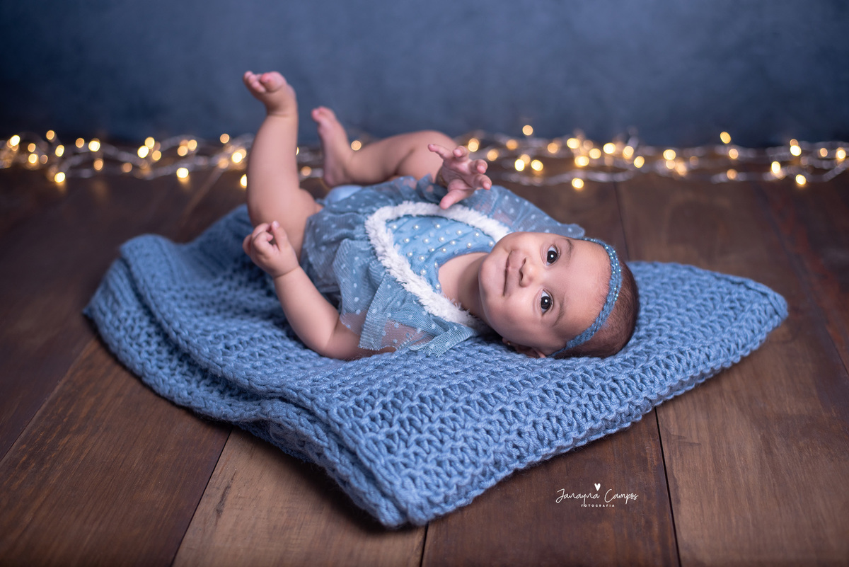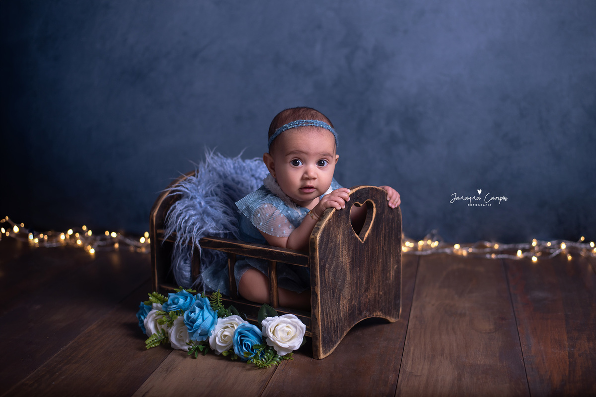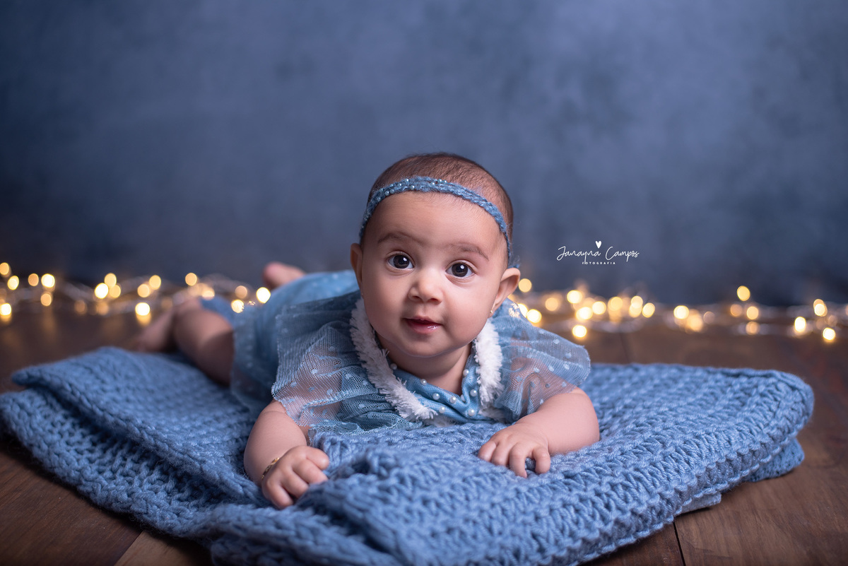 Sessão de acompanhamento fotográfico de bebê em estúdio