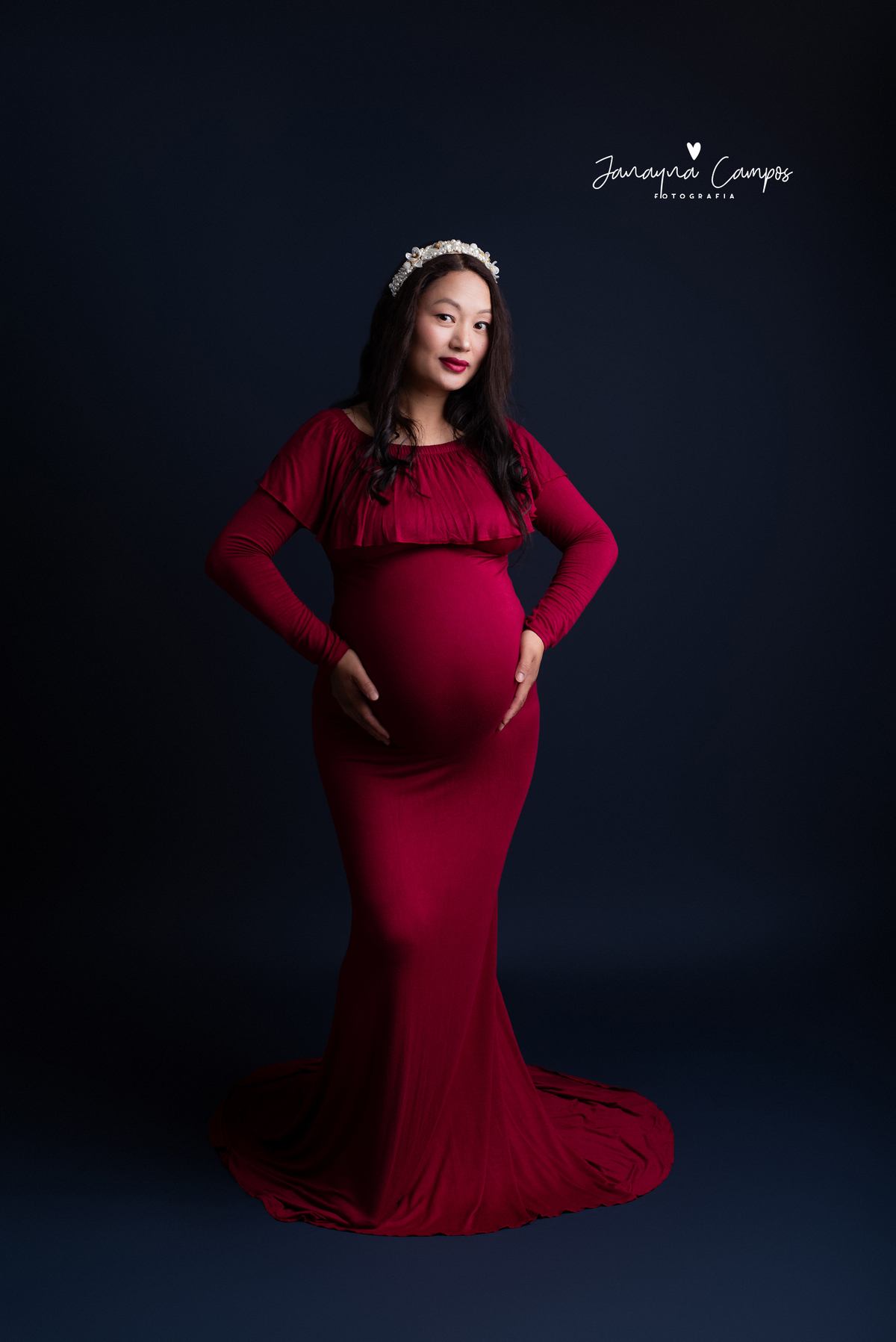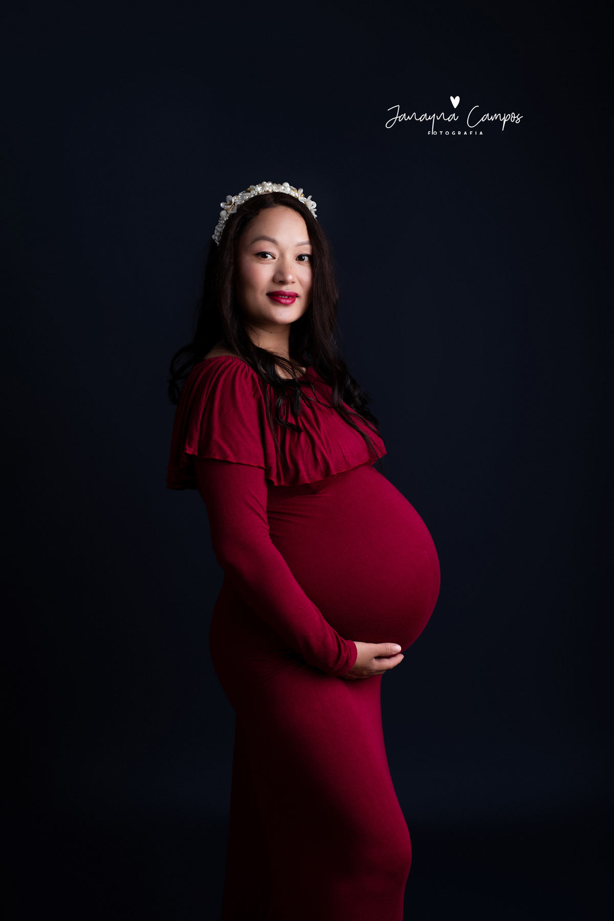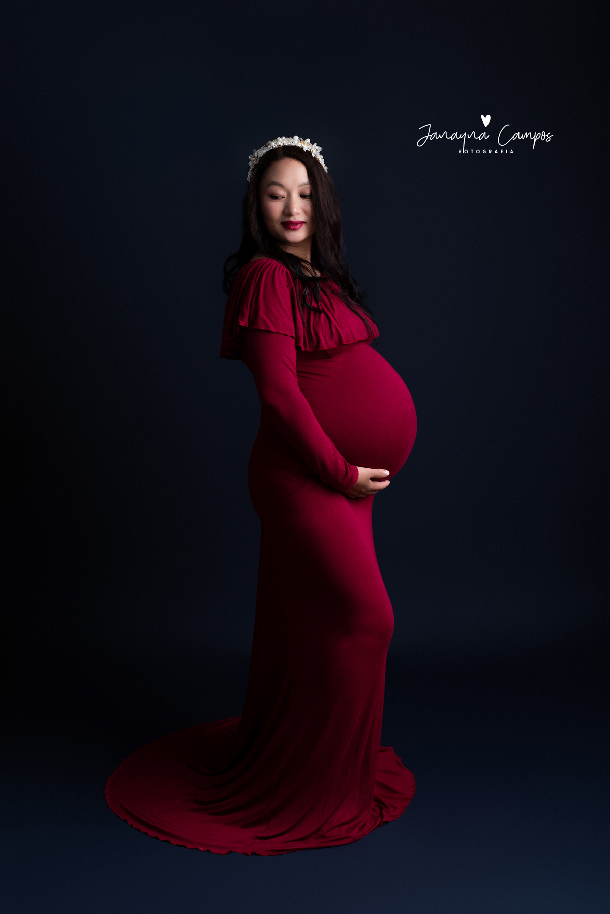 Sessão fotográfica de gestante em estúdio