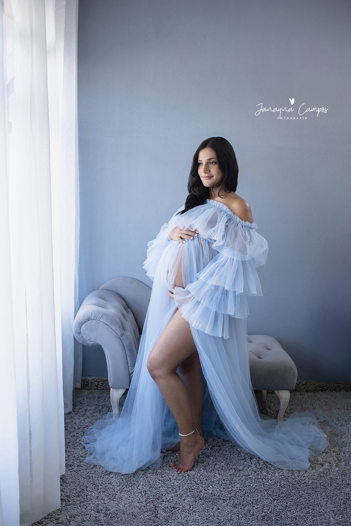 Fotógrafias de grávida em Portugal especializada em sessões de estúdio, com foco em registos emocionais e atemporais.