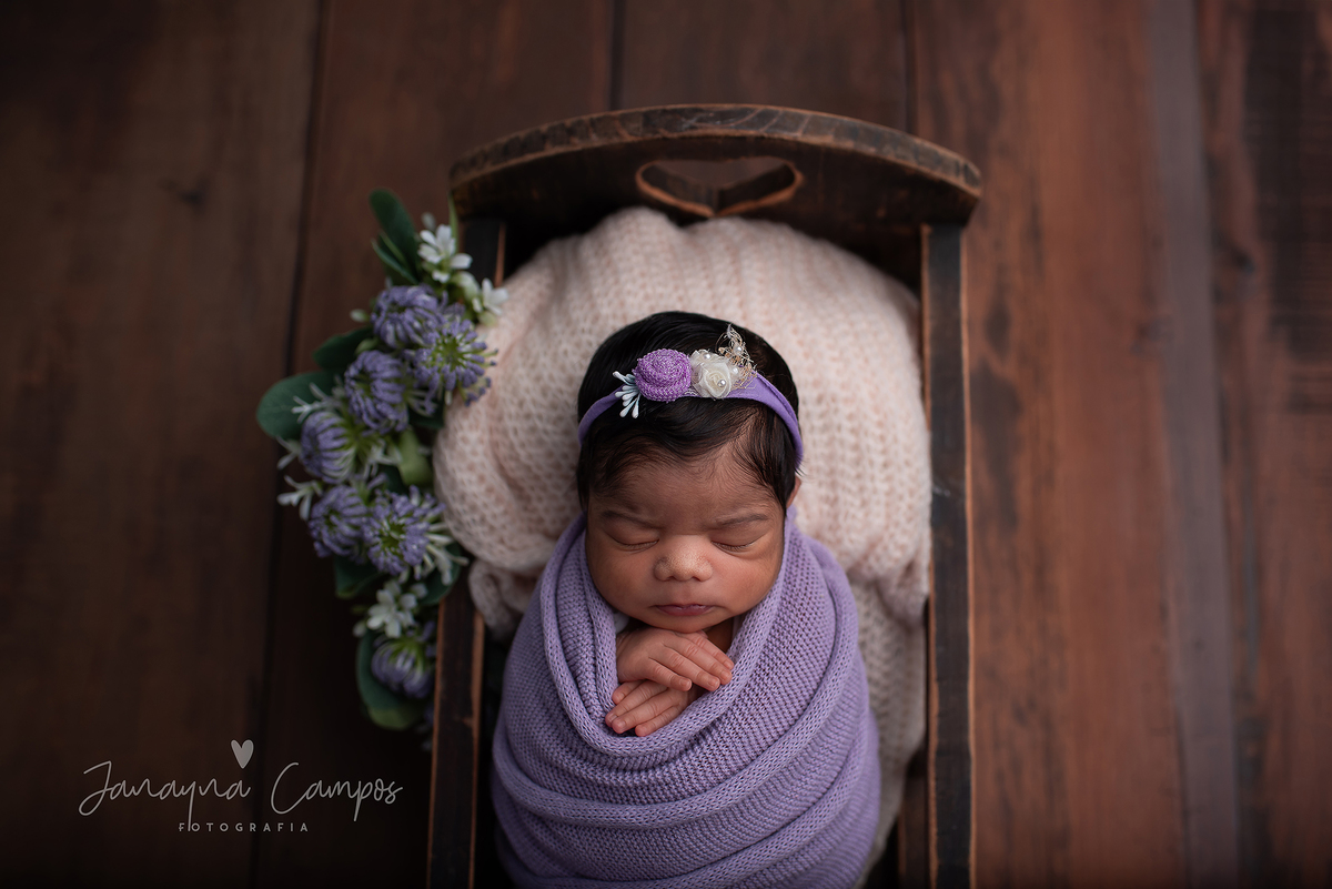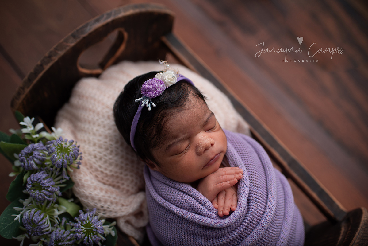 Sessão fotográfica de recém-nascida em estúdio