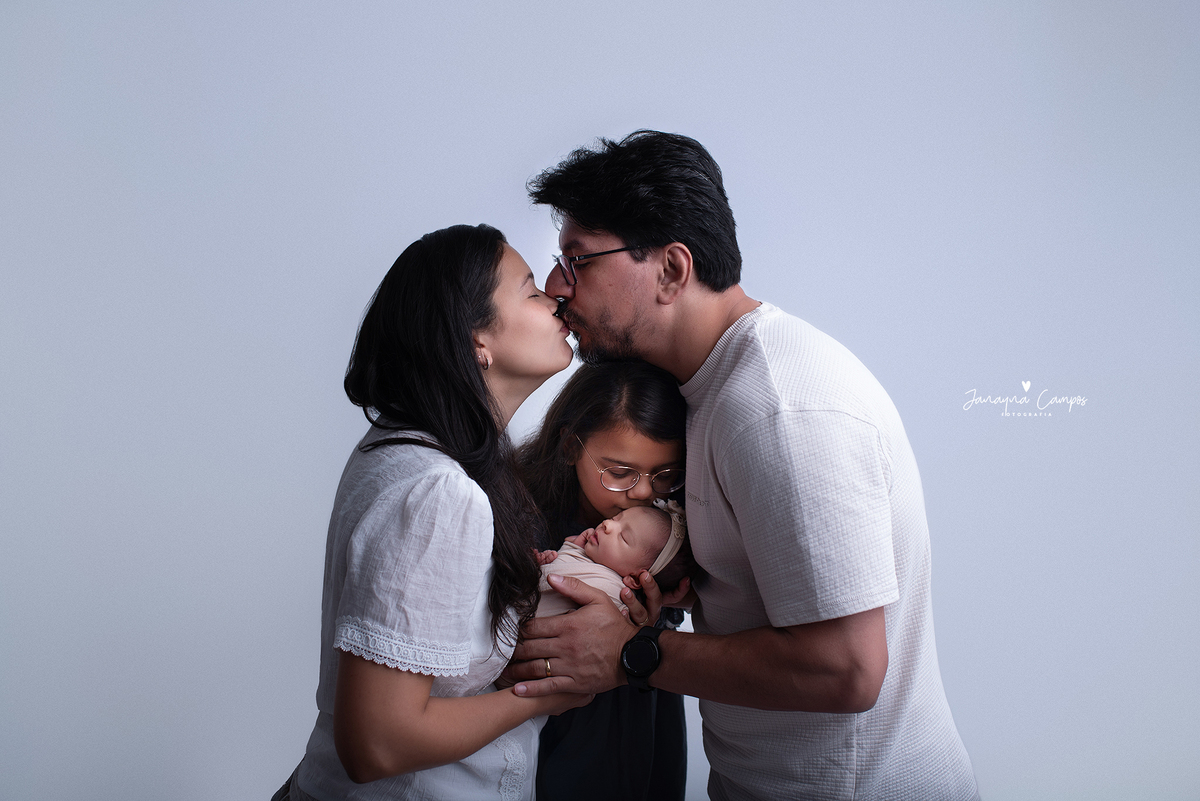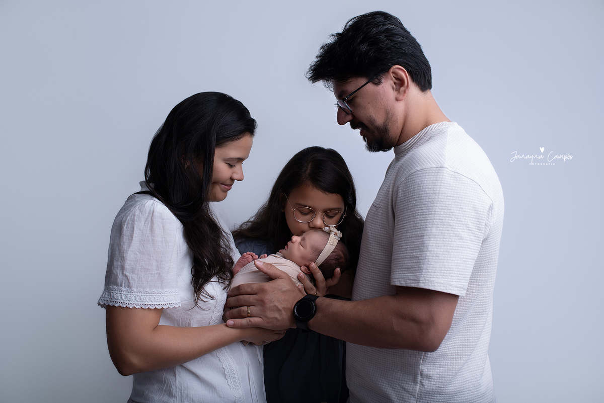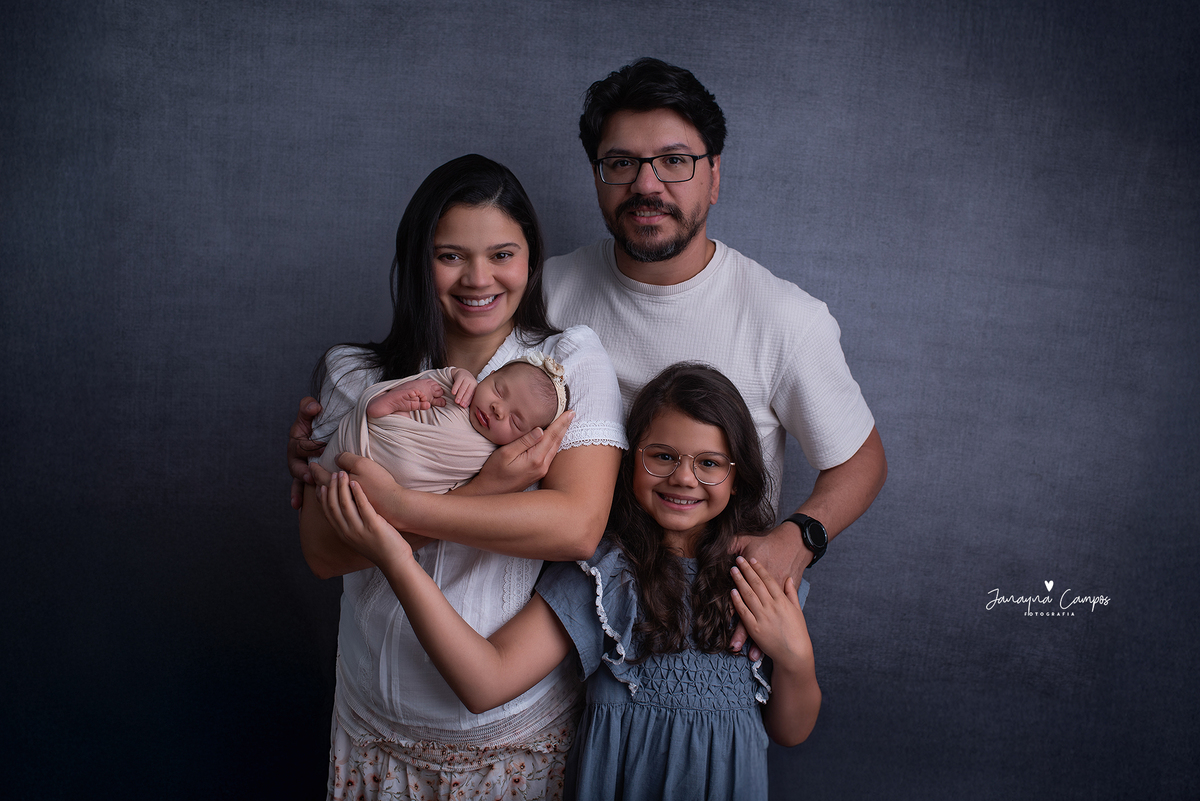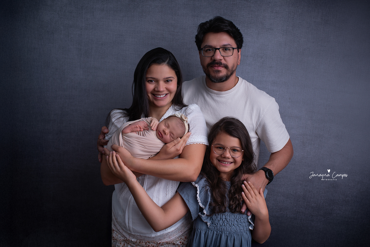 Sessão fotográfica de bebé com a participação da família