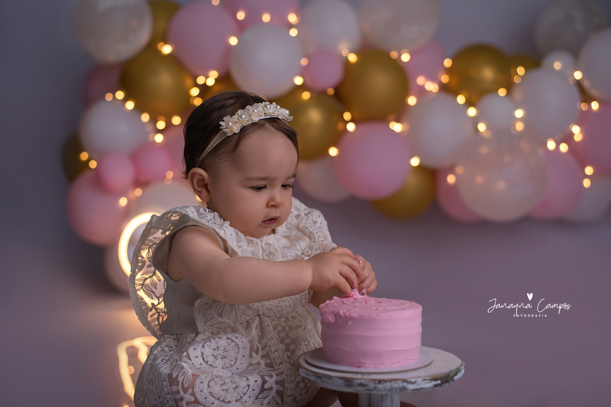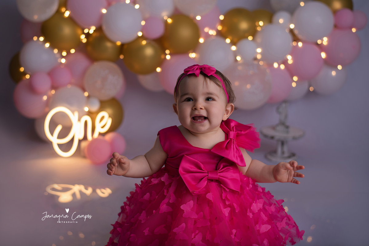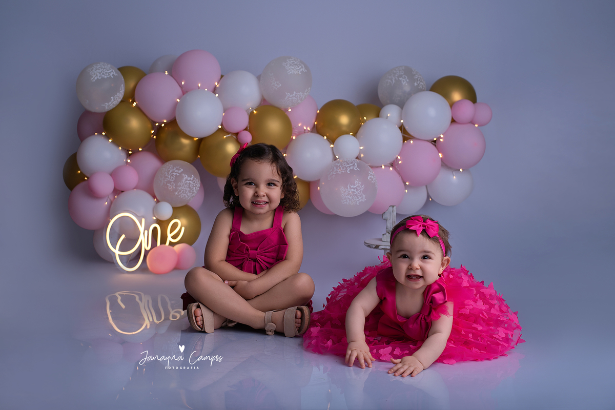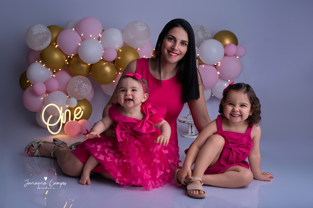 Sessão fotográfica em estúdio para celebração do primeiro ano de vida.