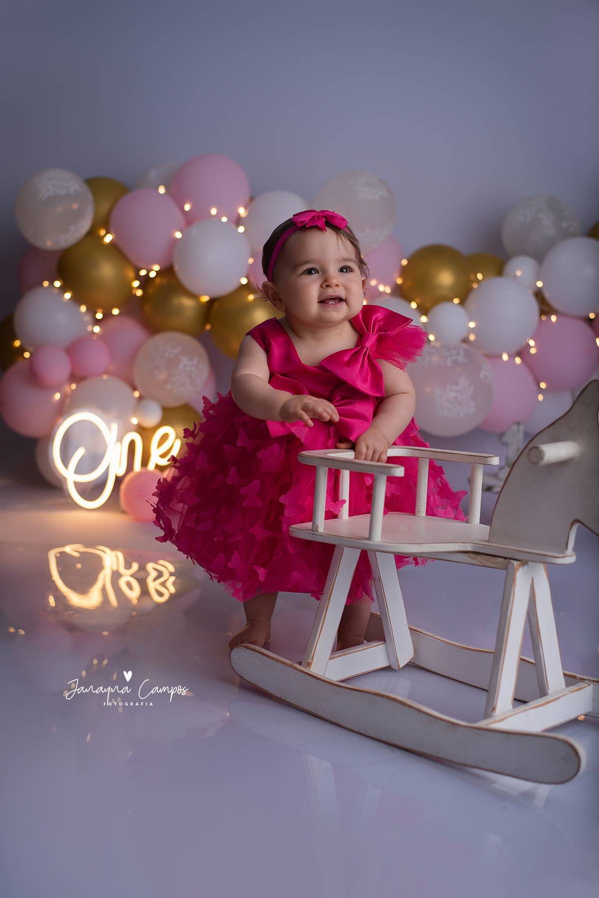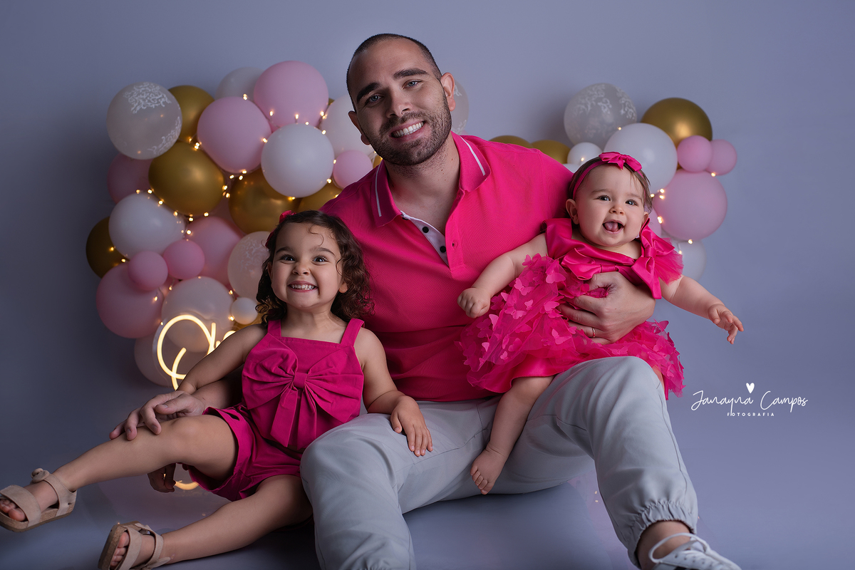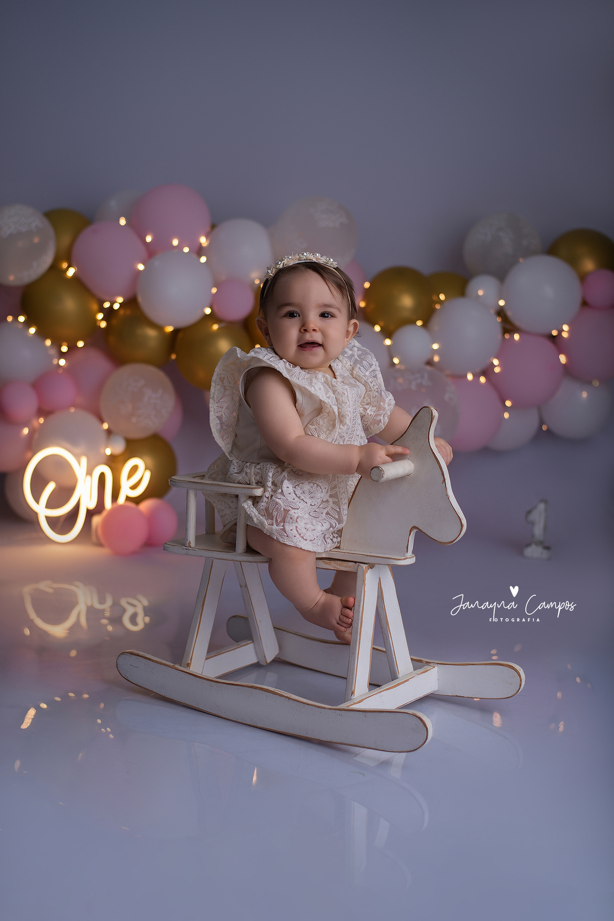 Sessão fotográfica em estúdio para celebração do primeiro ano de vida.