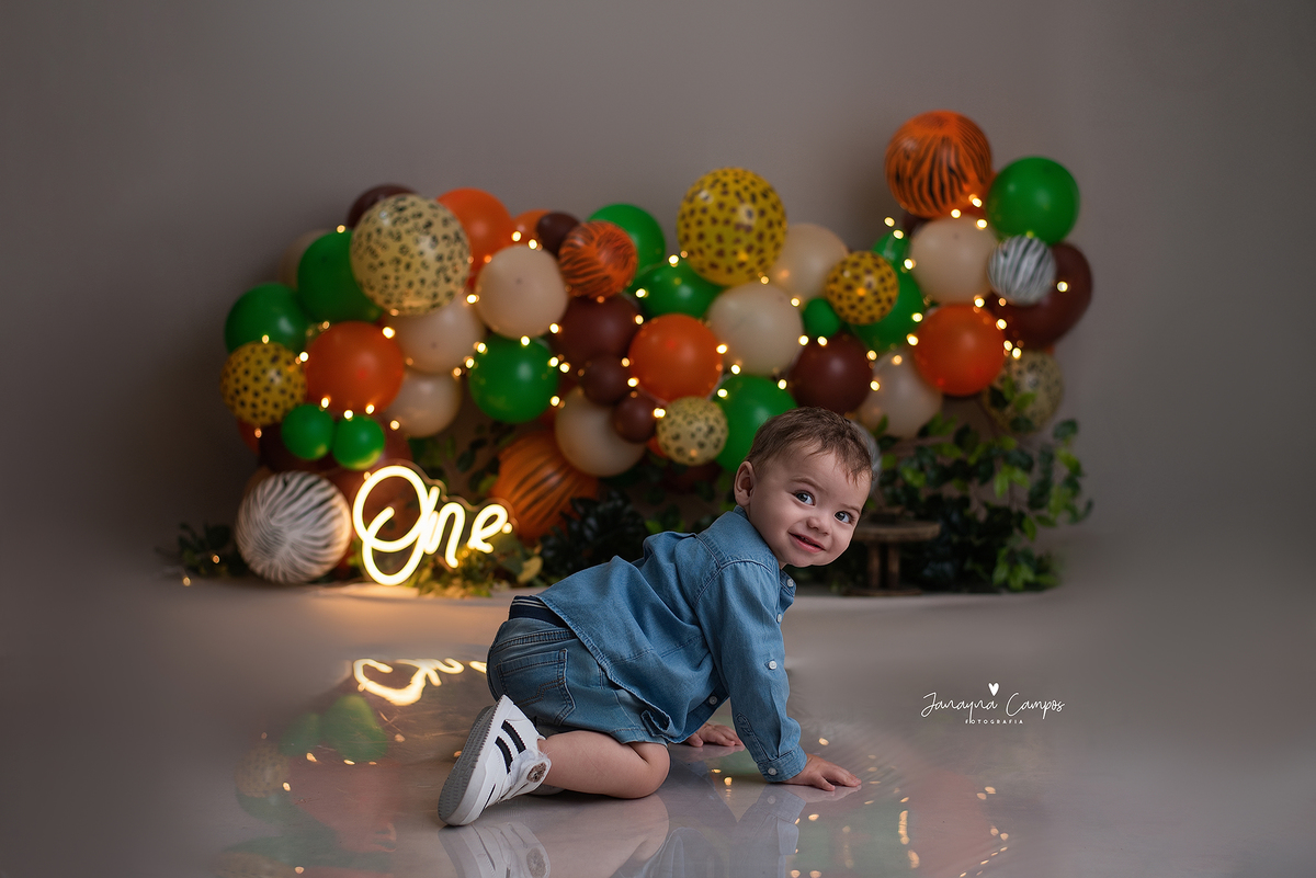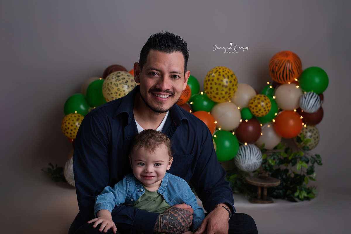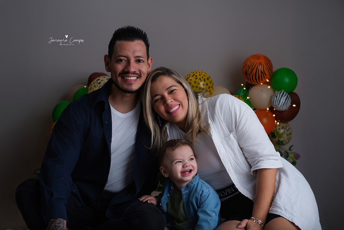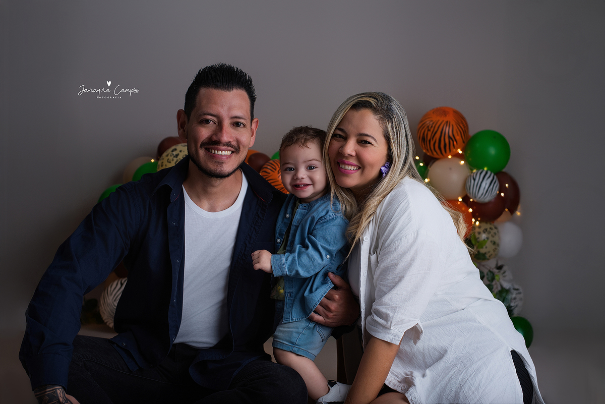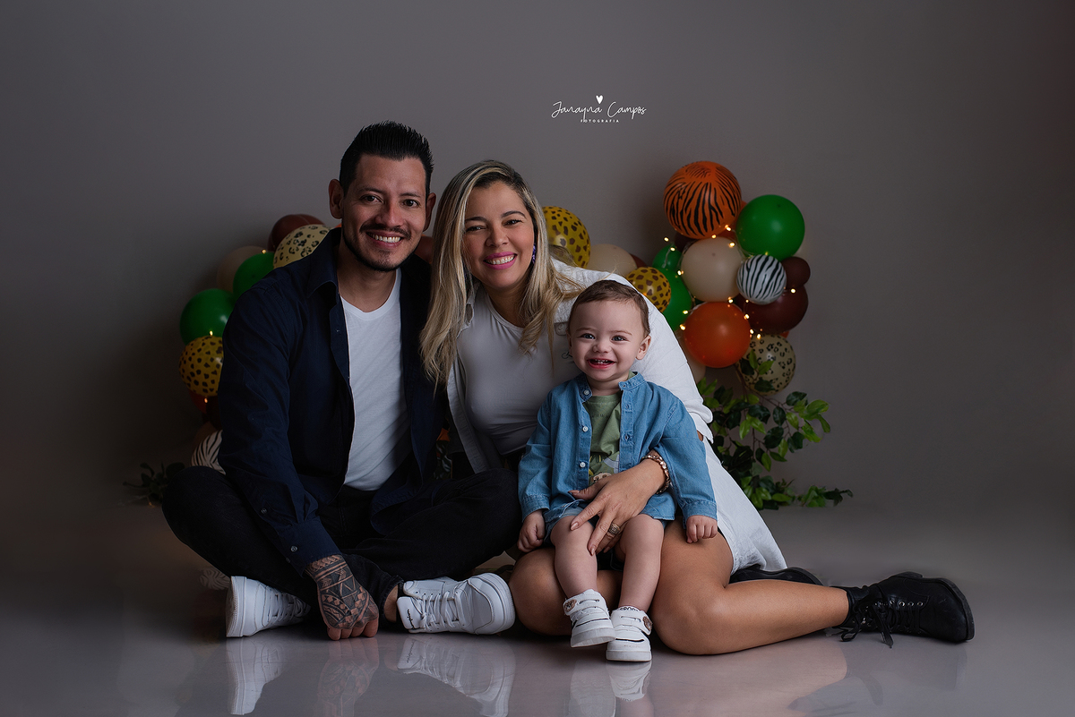 Sessão fotográfica em celebração do primeiro ano de vida do bebé com participação da família