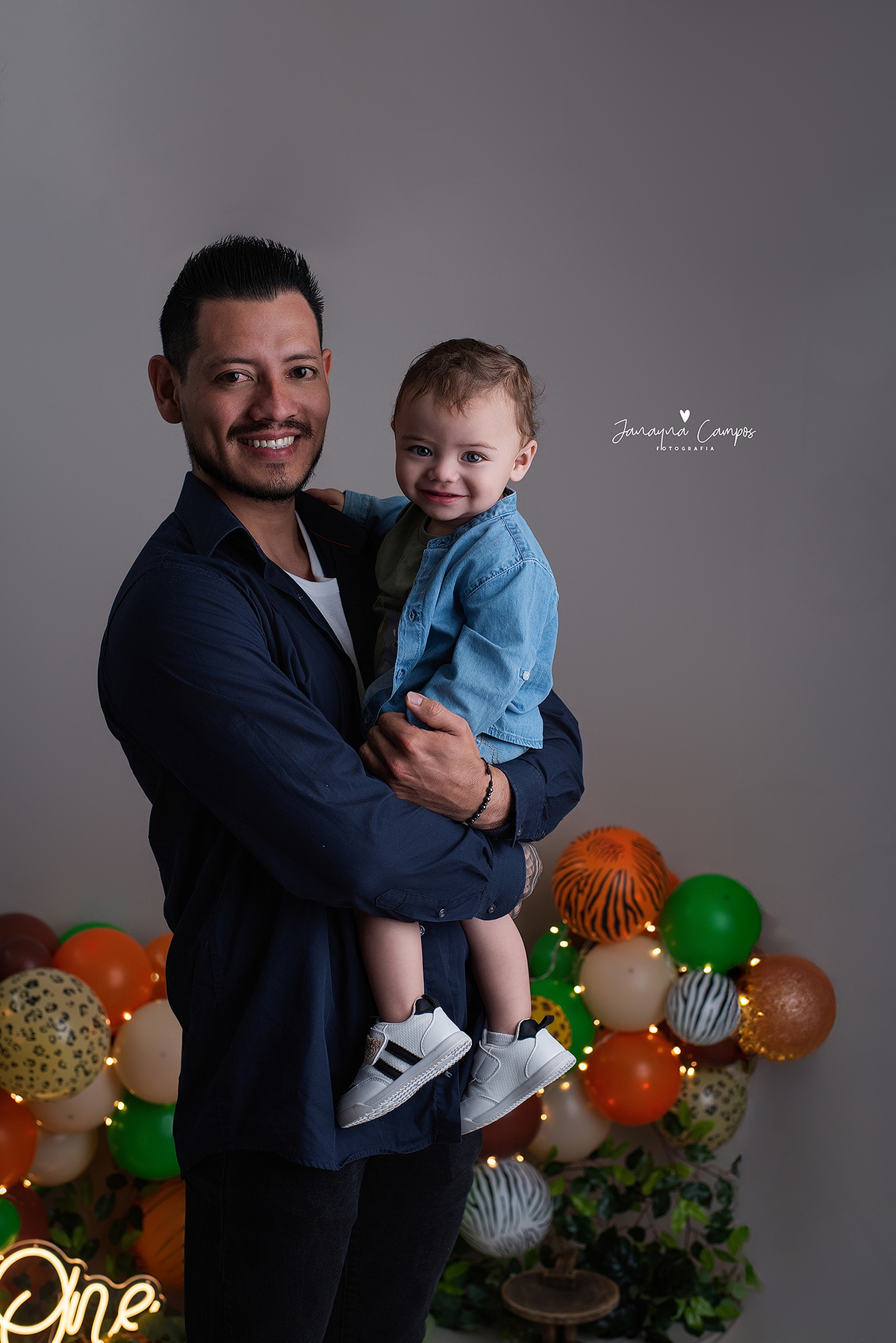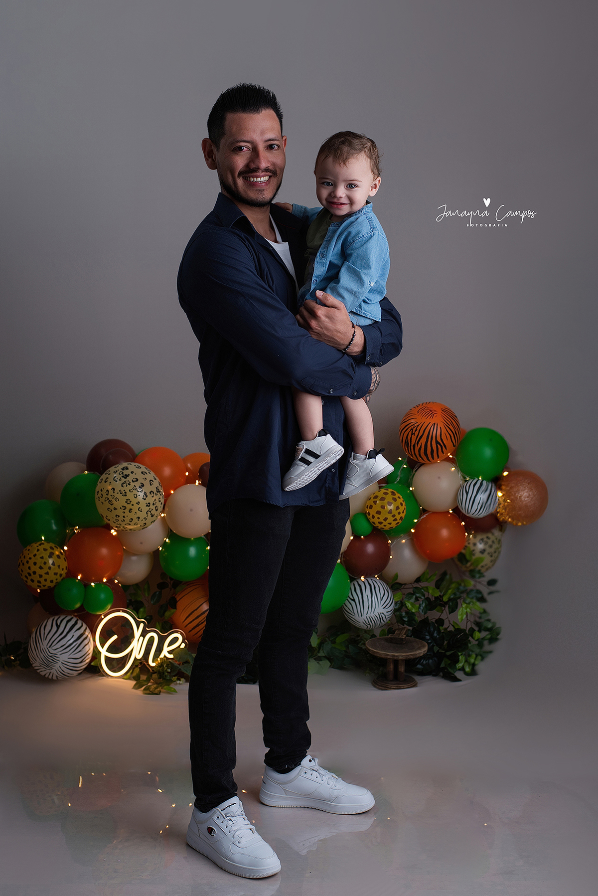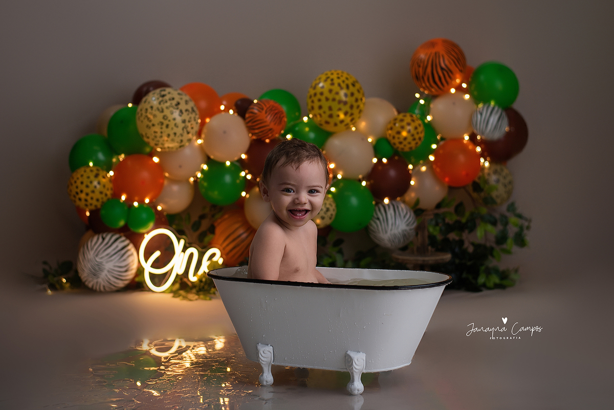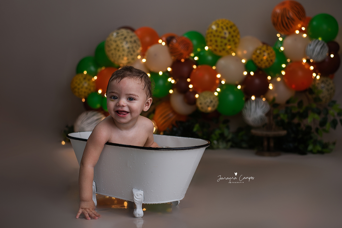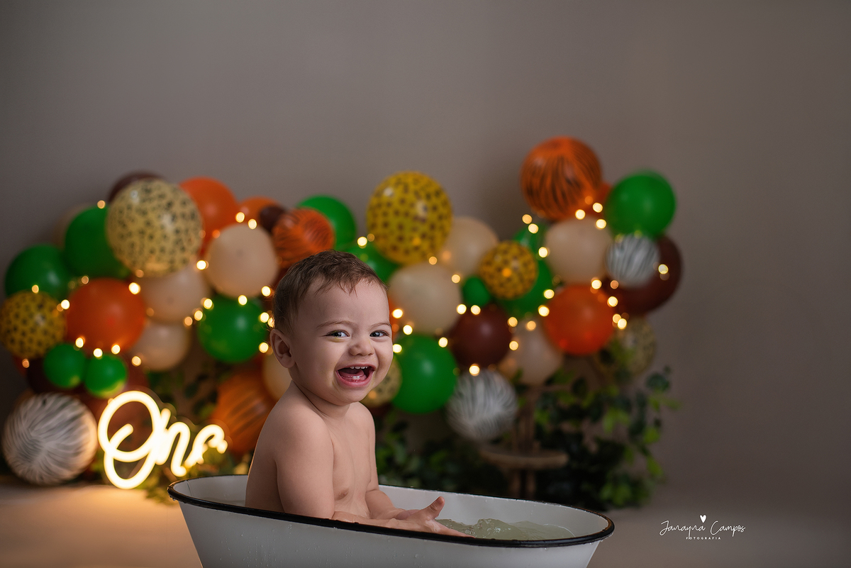 Sessão fotográfica em celebração do primeiro ano de vida do bebé com participação da família