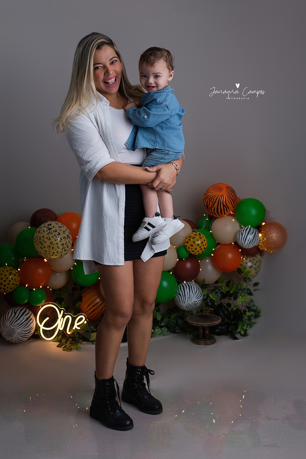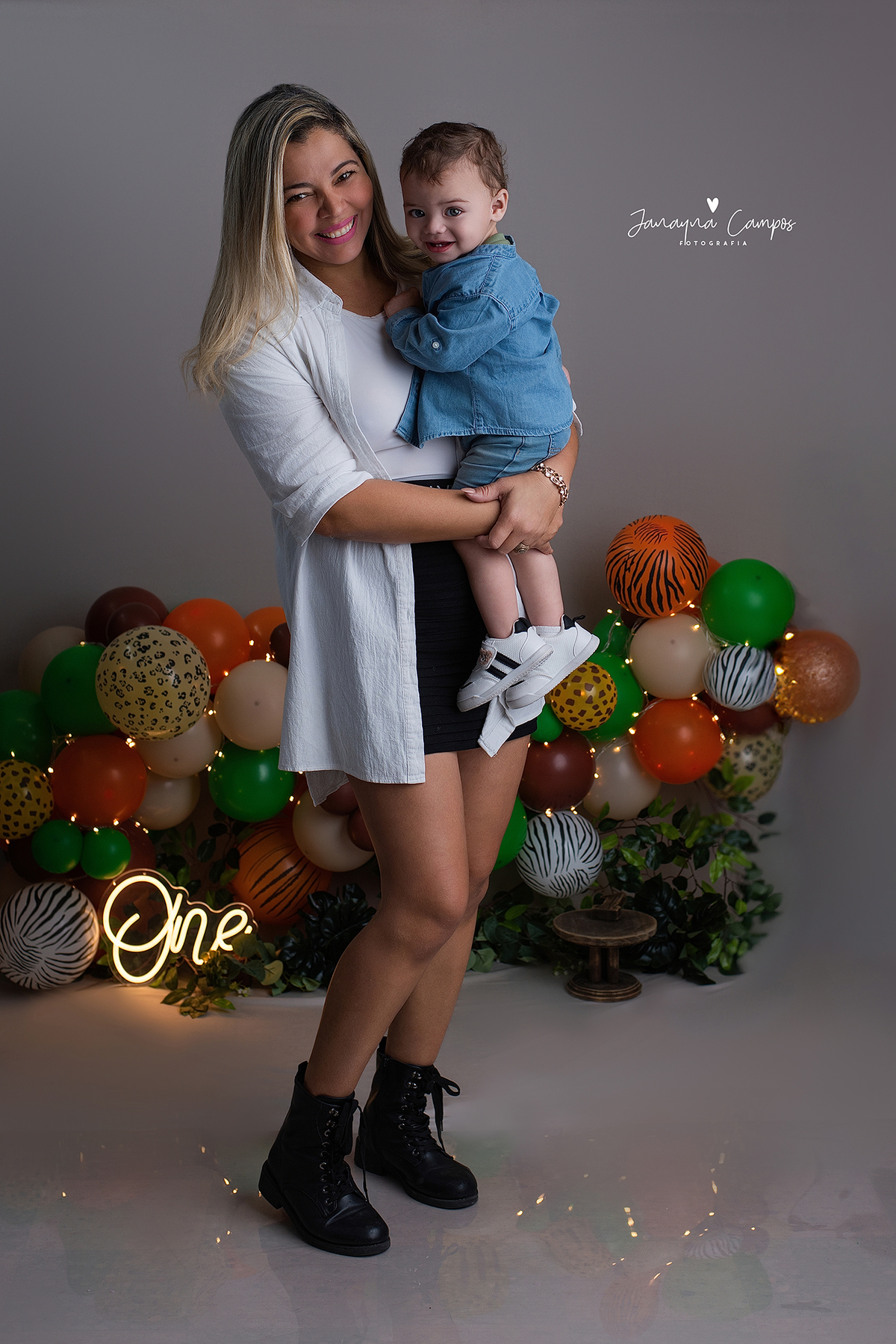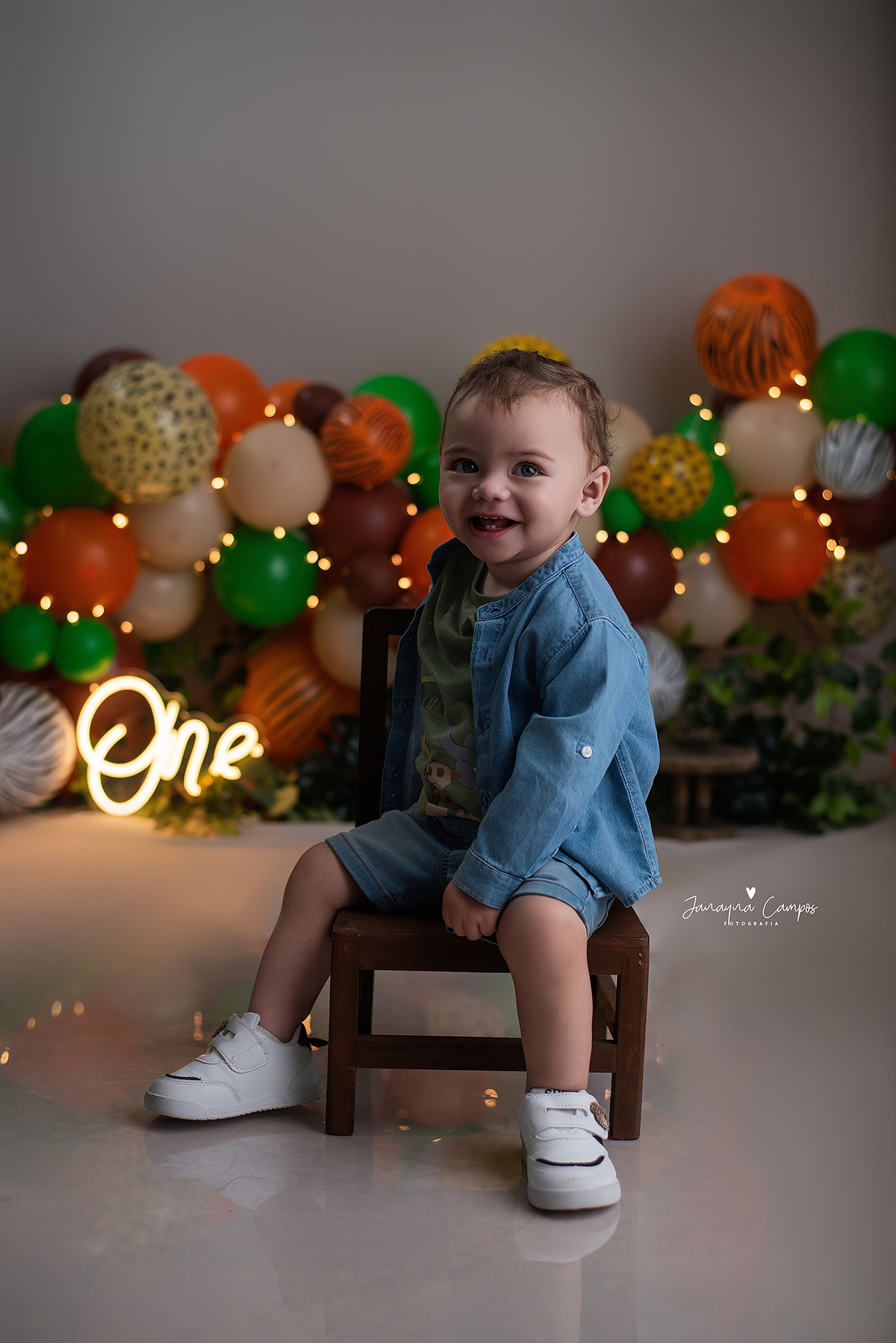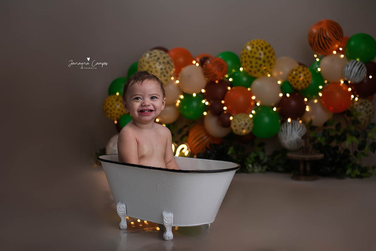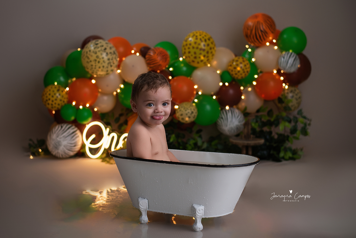 Sessão fotográfica em celebração do primeiro ano de vida do bebé com participação da família