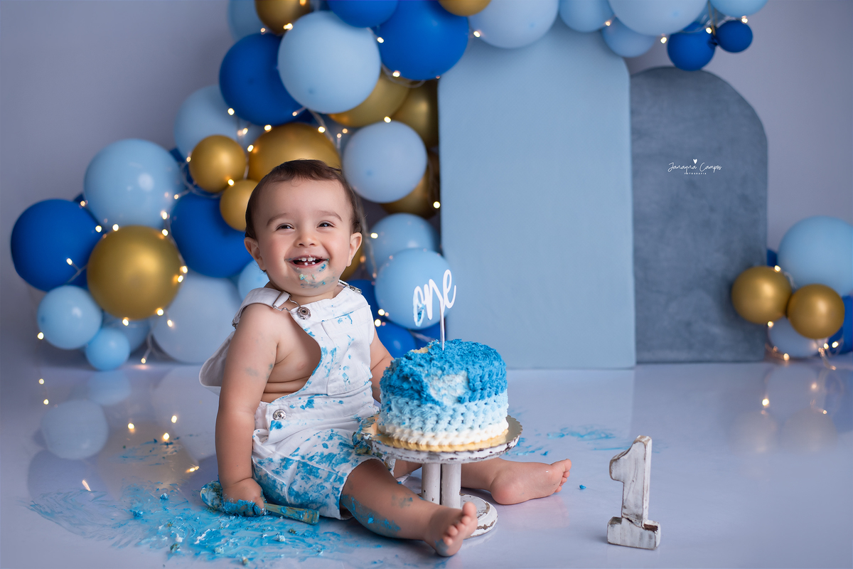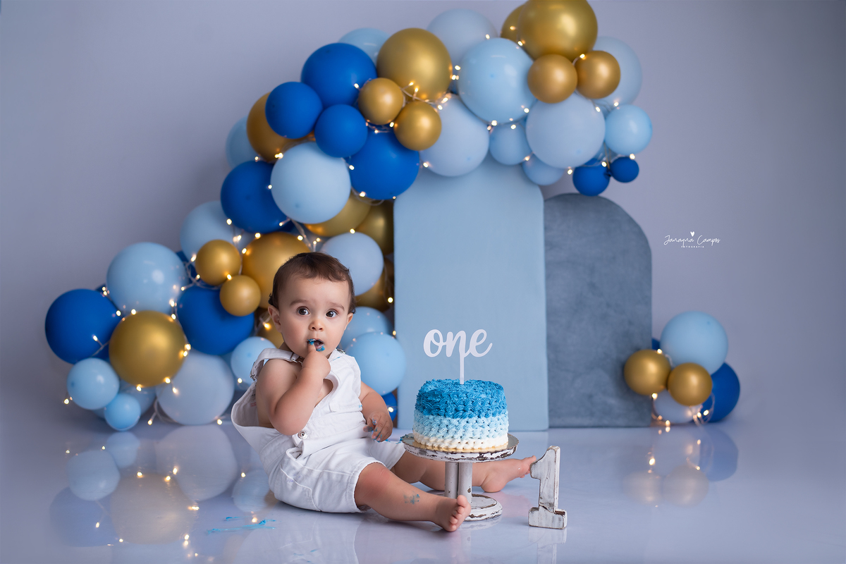 Sessão Smash the Cake em Torres Vedras, perfeita para registar o primeiro aniversário com fotos divertidas, naturais e cheias de expressão.