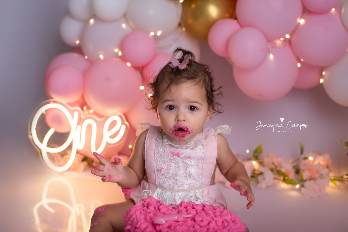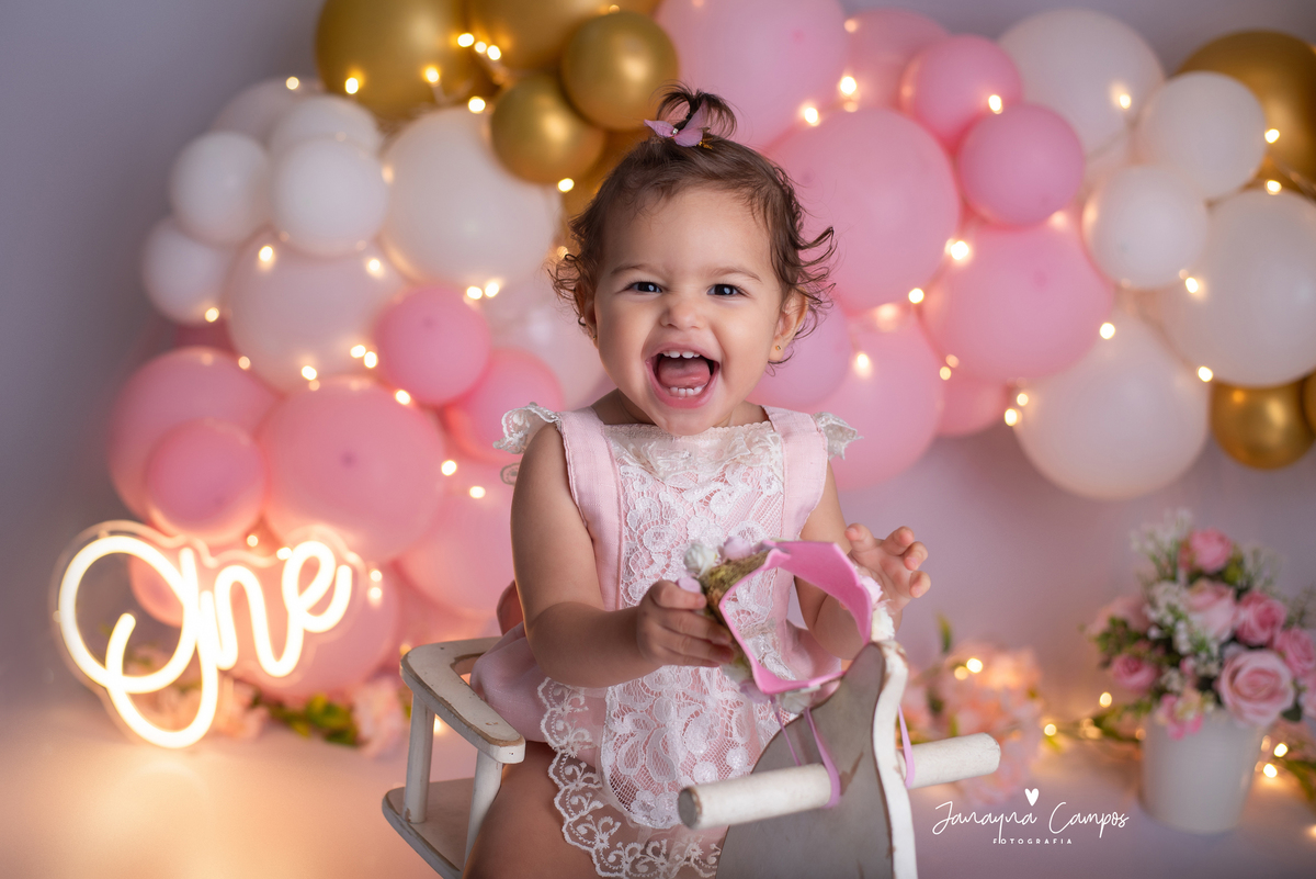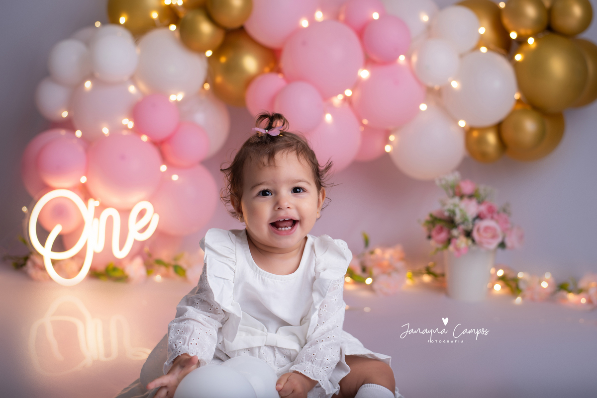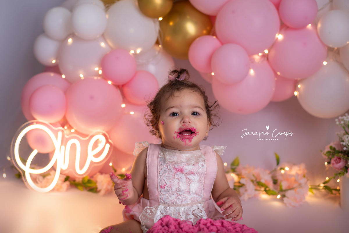 Uma linda e delicada sessão para comemorar com muita festa o primeiro aninho da Maitê.