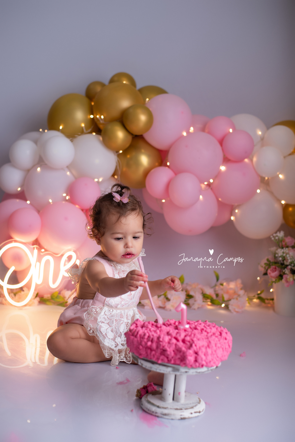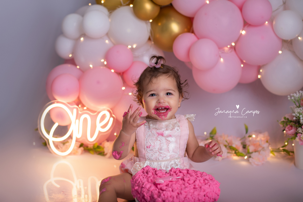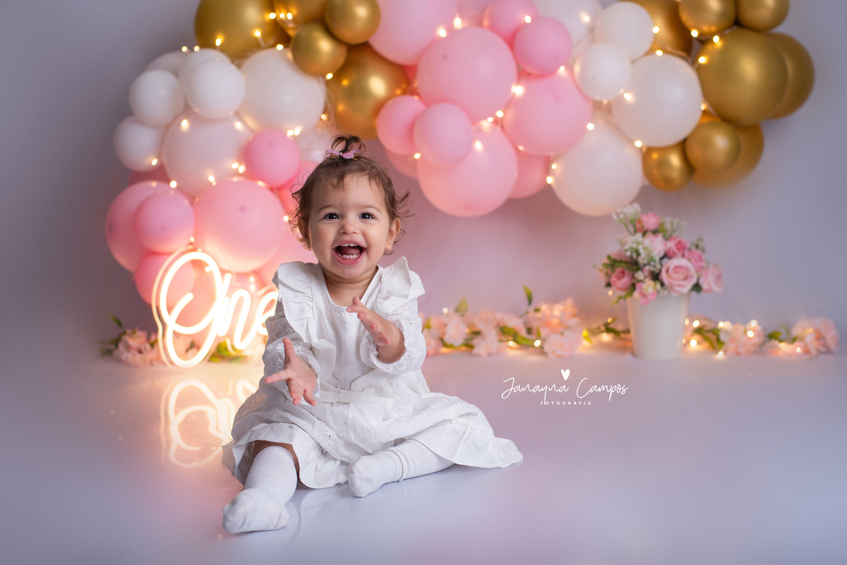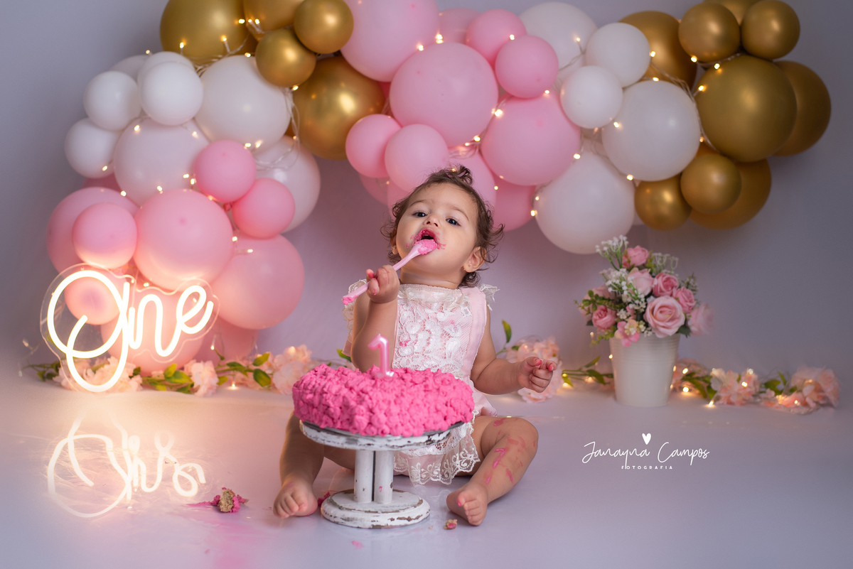 Uma linda e delicada sessão para comemorar com muita festa o primeiro aninho da Maitê.