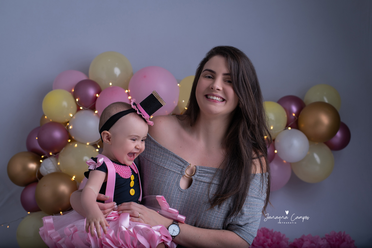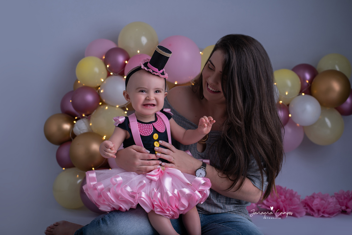 Ensaio Smash the Cake tema Mundo Bita Rosa.